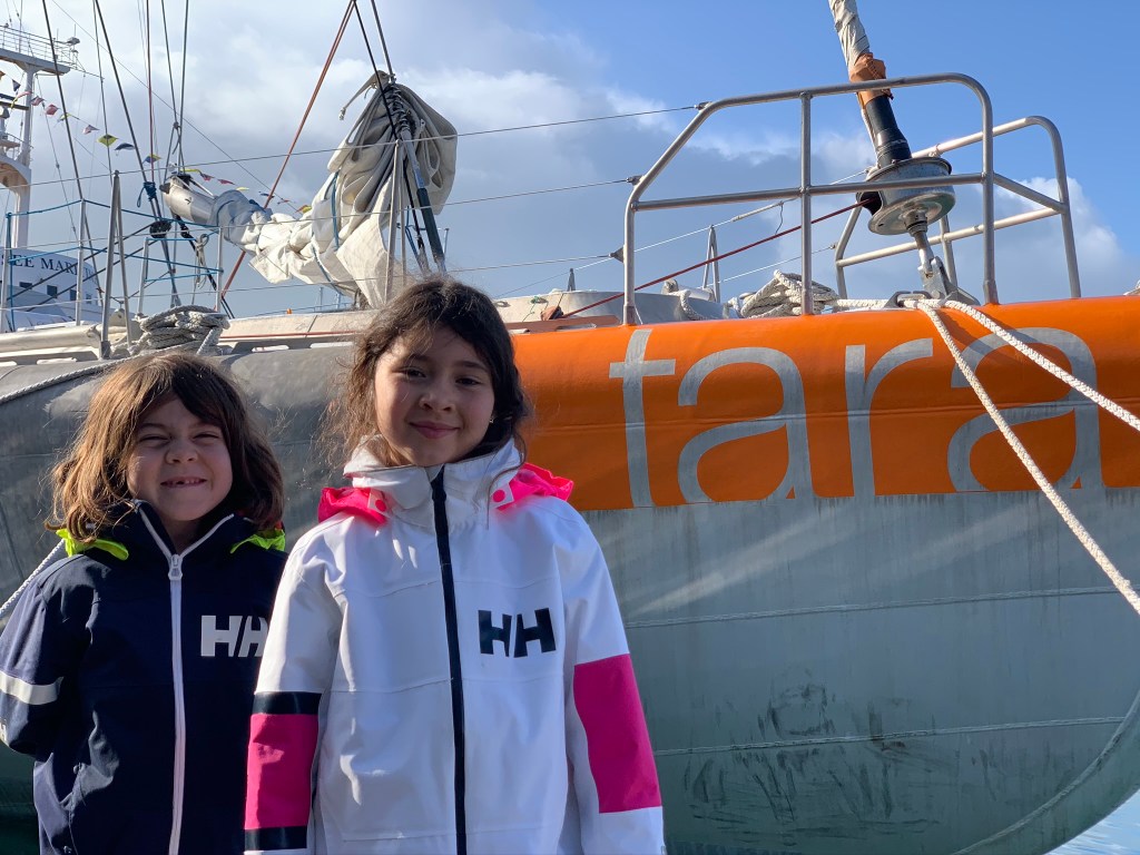 Nous avons le privilĆØge d’avoir Tara amarrĆ©e Ć quelques mĆØtres de nous Ć la marina. Tara est un voilier d’expĆ©dition scientifique qui a aussi une mission Ć©ducative de sensibilisation Ć lāenvironnement .