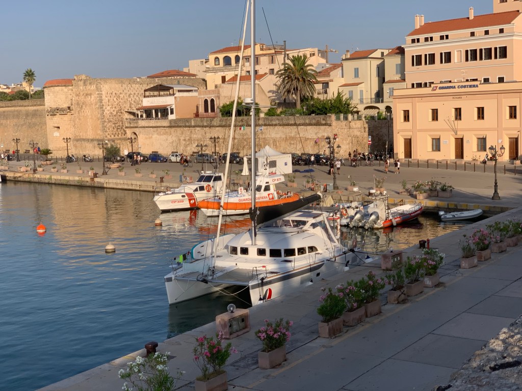 Nous passerons nos premières journées au port d’Alghero. La ville offre gracieusement une place au port pour les bateaux en transit pour un maximum de 5 jours ( pour les marins, voir les infos que j’ai inscrites sur Navily). Nous profiterons de cette option afin de faire un bon avitaillement et de découvrir la ville et ses environs. Quelle belle opportunité quand on sait qu’au quai juste à côté, il en coûterait près de 150$ par nuit pour y amarrer Vahana! Nous nous gâterons donc souvent avec de bons restaurants, gelato et autres plaisirs. Il faut bien compenser! 😉