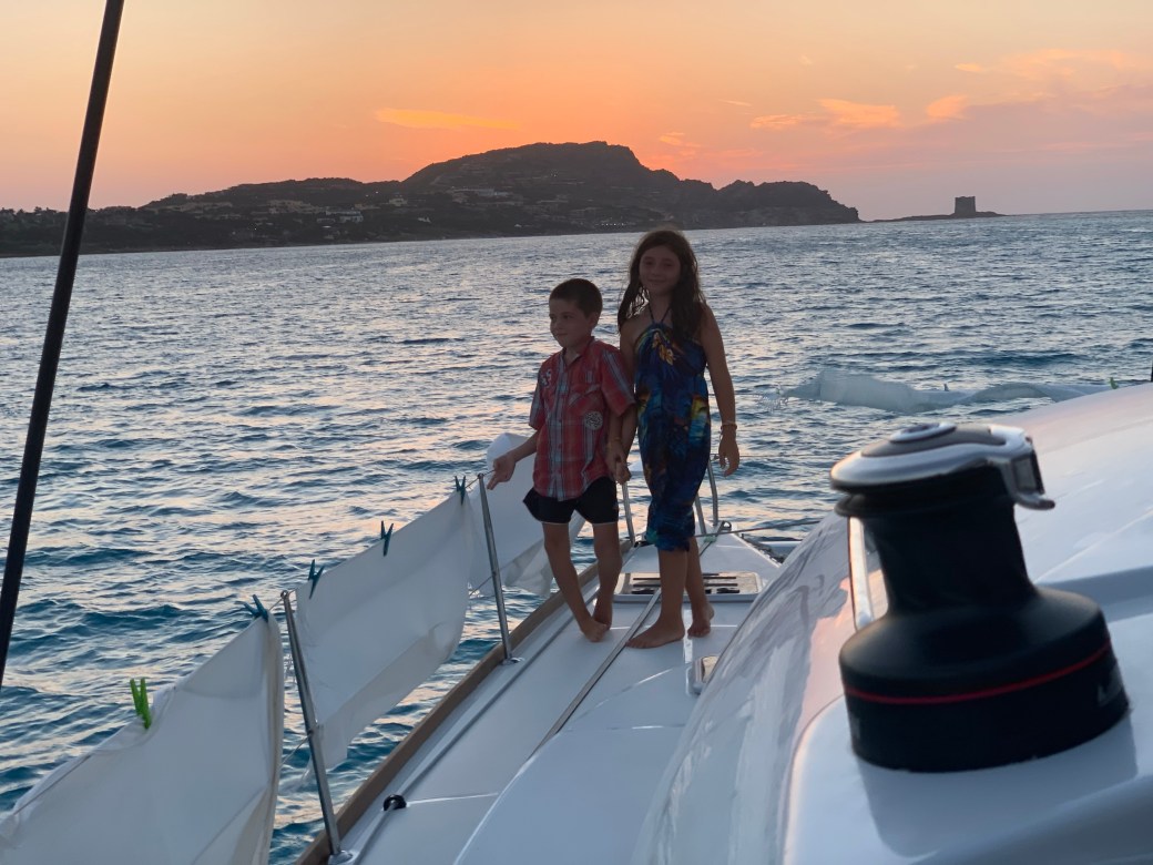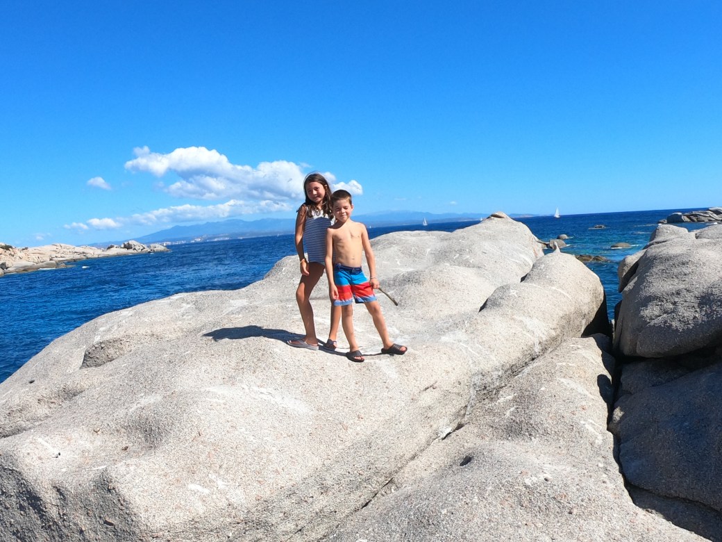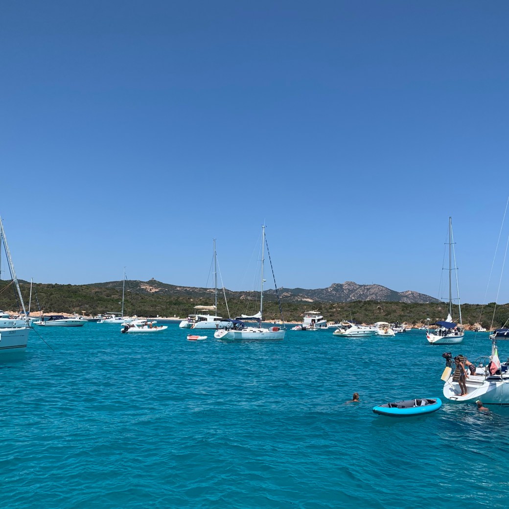 Nous passerons quelques jours dans le beau mouillage de Cala Liscia. Cependant, puisque c’est en août que les Européens prennent tous leurs vacances, nous trouvons qu’il y a pas mal de monde dans les petites baies. C’est surpeuplé! C’est ici que se trouve le Nikki Beach Bar proposant des bouteilles de 6 litres de Dom Pérignon à 40 000€ (60 000$) la bouteille 😳. Le va et vient constant des nombreux bateaux nous donne le tournis et nous craignons même de faire baigner les enfants autour du bateau tellement ça bouge! On s’ennuie un peu des petits mouillages tranquilles.
