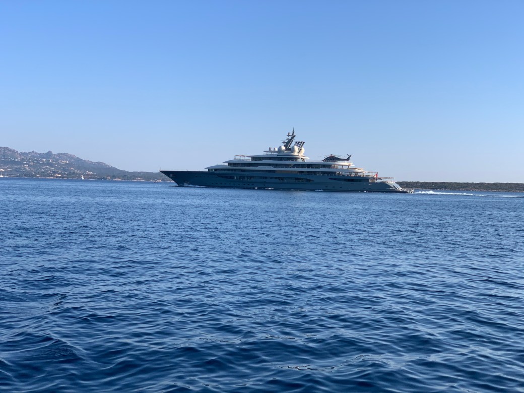 Nous croiserons aussi des yatch avec hélicoptère à bord. Comme celui-ci que vous pouvez louer pour la modique somme de 3 500 000€ par semaine. Rien de trop beau pour la classe ouvrière 🤷🏻♀️ Ce type de bateau se compte en très grand nombre dans le secteur.