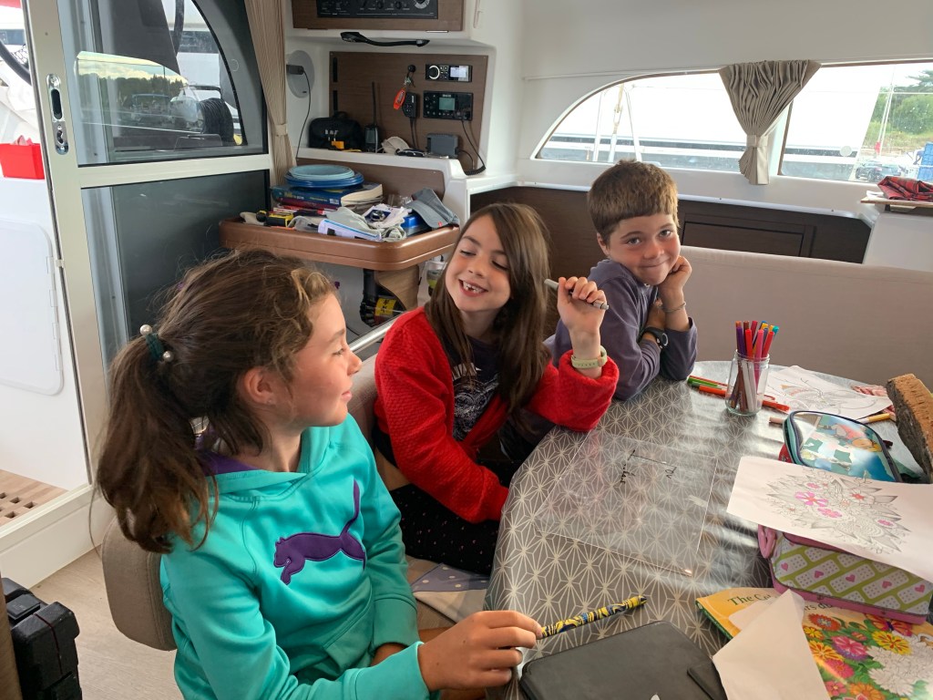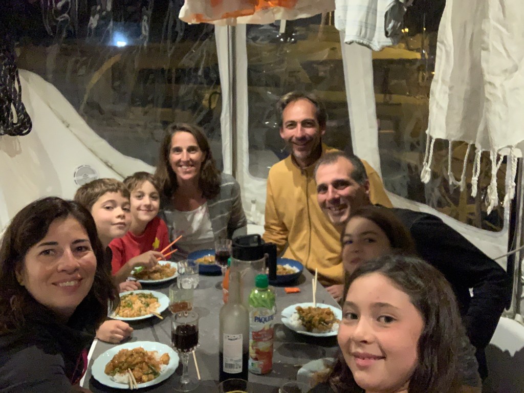 Notre corps est bien amariné. Nous retrouvons notre vigueur et notre appétit habituel. Les enfants jouent, on fait un peu d’école, la vie reprend à bord de Vahana. On prend tous une bonne douche chaude.